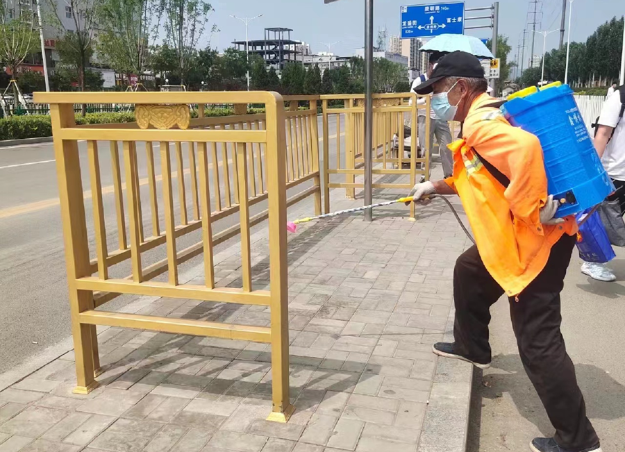 建设与公用事业管理部全面推进环卫作业精细化管理,打造精细化环卫保洁。一是加大人工清扫保洁力度,进行开荒式清理,积极清理卫生死角、垃圾杂物和违规小广告,作业人员勤走动、勤观察、勤扫除、随时扫、不留堆,做到“六无六净两不准”。二是利用夜间错峰作业,机械清扫冲洗湿法作业,强化洒水降尘,确保主次道路和小街巷无污染、不扬尘。三是垃圾清运规范作业,做到车走地净无残留,保证日产日清,密闭收运。四是提升市容环境质量,扎实开展环境卫生综合整治行动。五是防范疫情,加大外来人员排查力度,每日坚持对环卫工人进行测体温查码,严格作业人员管理、做好安全防护,严禁扎堆聚集,人员、车辆和环卫设施严格做好每日消杀。