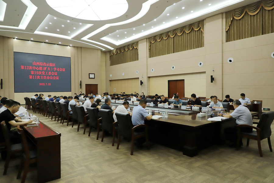 7月22日,山西综改示范区召开中心组(扩大)学习会议暨党工委会议,深入学习贯彻习近平总书记近期重要讲话重要指示精神,传达省委、省政府上半年全省经济形势分析会议精神,听取2022年上半年经济运行、招商引资和市场主体倍增工作情况汇报,并就做好贯彻落实工作进行安排部署。省政府副秘书长、山西综改示范区党工委书记、管委会主任刘锋主持。