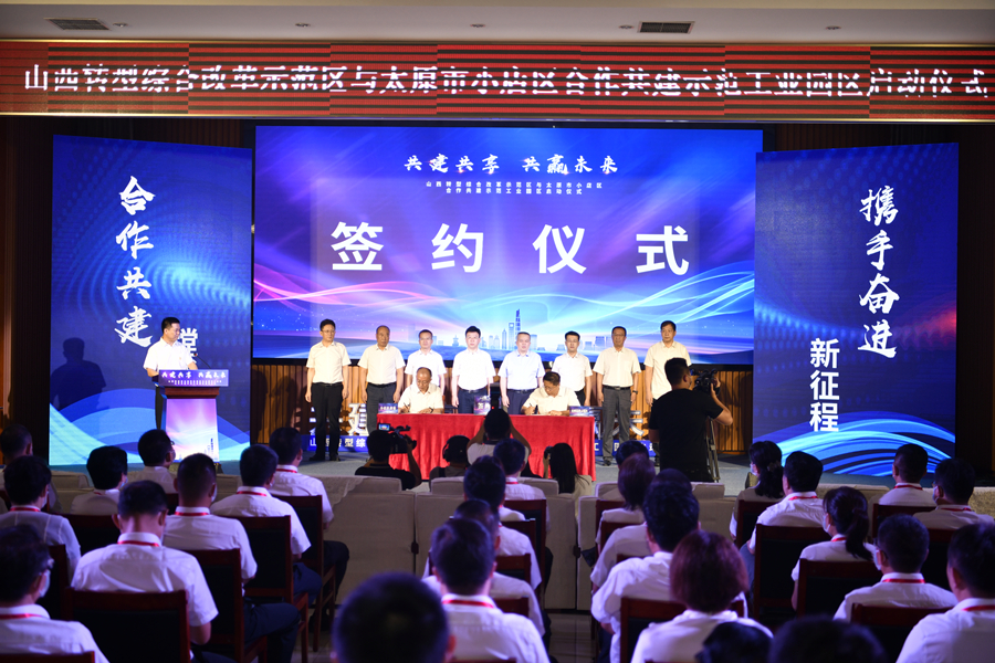 在喜迎党的二十大胜利召开之际,7月19日,山西综改示范区与太原市小店区共建示范工业园区启动仪式举行。省政府副秘书长、综改区党工委书记、管委会主任刘锋宣布项目启动。综改区党工委委员、管委会副主任陈曦致辞,并代表管委会签约。小店区委书记袁尔铭讲话。小店区委副书记、区长康建斌代表小店区政府签约。