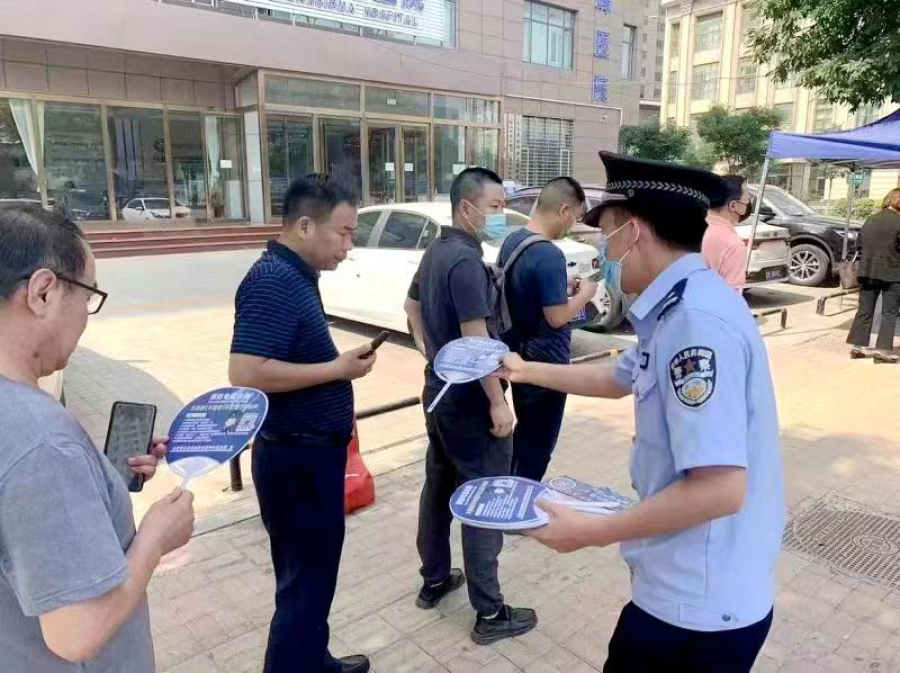 “你好,这是中环派出所印制的宣传扇,印有反诈小知识和国家反诈中心APP 二维码,可以多拿几把,让家里人也看看”。近日,在辖区各个核酸检测点附近,中环派出所民辅警忙着给前来做核酸排队等待的群众发放印制的反诈宣传扇。